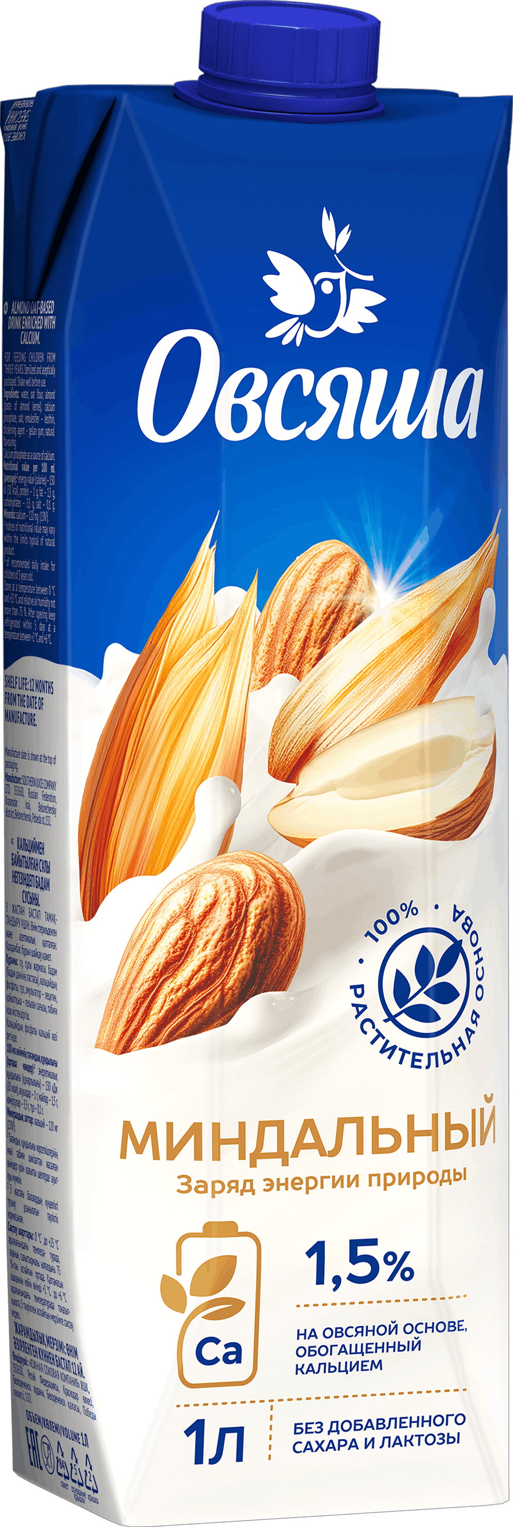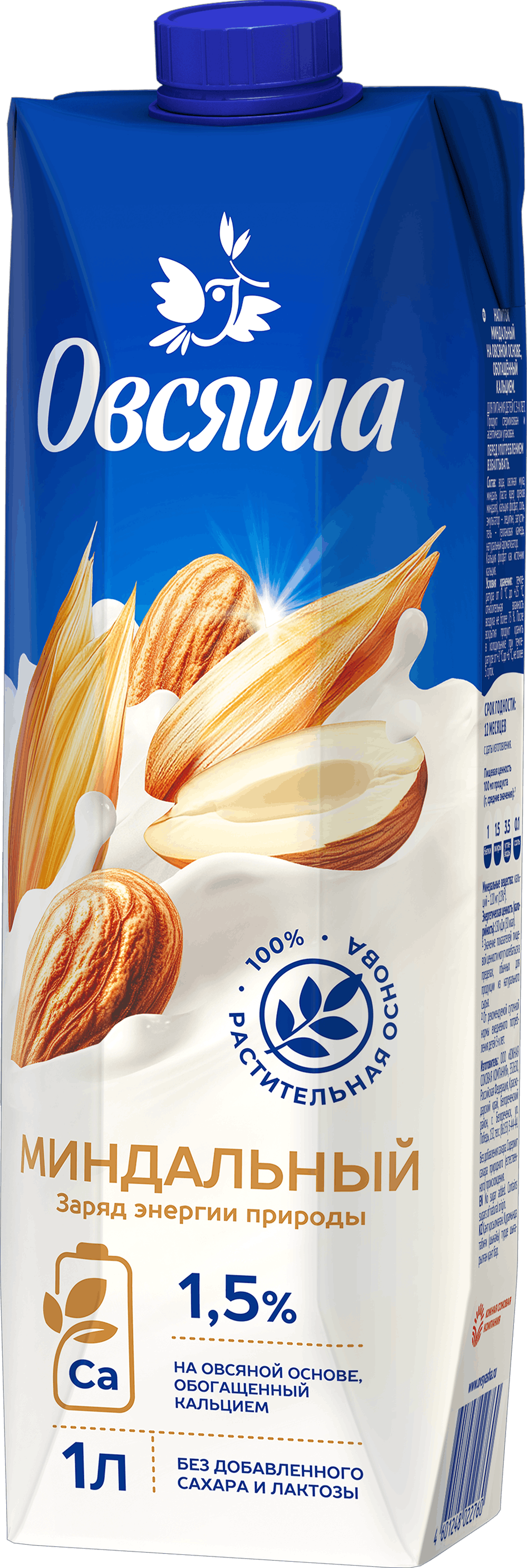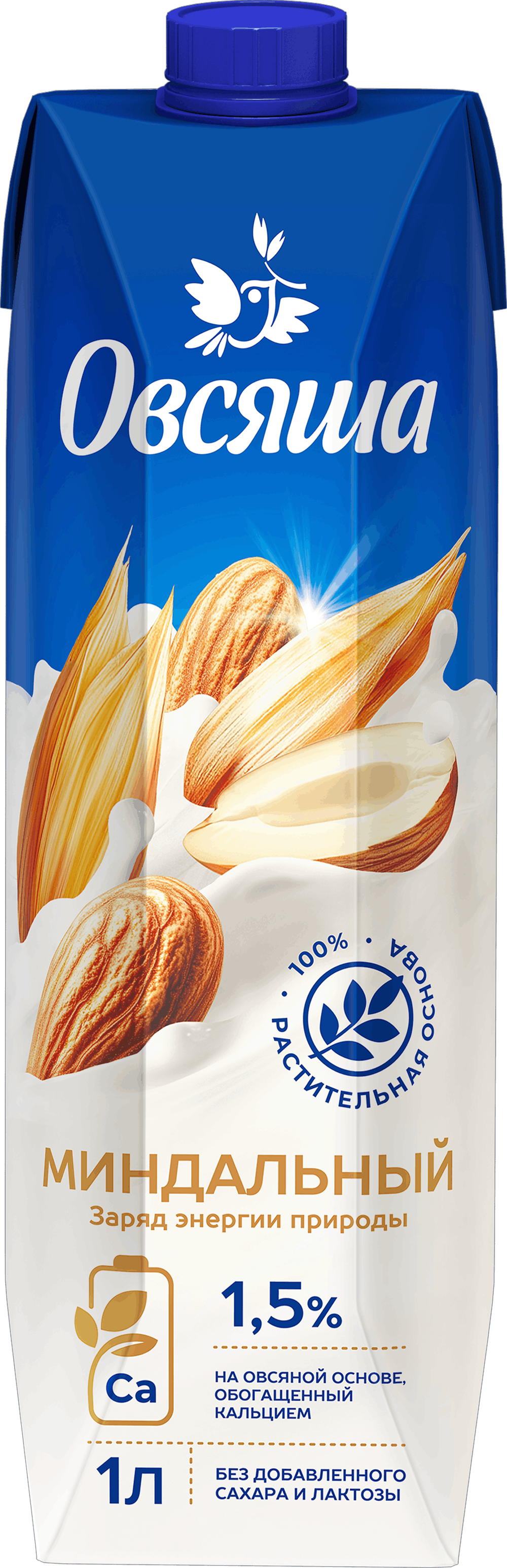 Овсяша напиток миндальный на овсяной основе 1,5% без сахара, ГМО и лактозы, обогащенный кальцием. Овсяша — это натуральный продукт высокого качества, который может стать идеальной заменой традиционного молока и молочных коктейлей.